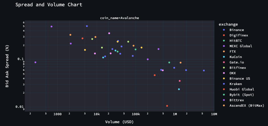 - XE Token Analyzer: Find cross exchange market making and arbitrage opportunities by visualizing the spread vs volume per exchange for various tokens (see example chart above).